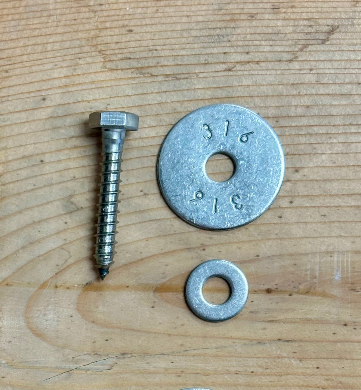 Lag Bolts: Choose this option if you don't have access to the underside of your dock, or want a simpler install, as these simply screw in after drilling a 1/8" pilot hole. The 1.5" 316 Stainless Lag Bolts will penetrate about 1" into your dock, ensuring solid hold. Set comes with 4 x 1/4" x 1.5" Lag Bolts, 4 Fender Washers, and 4 Flat Washers - all 316 stainless. Use fender washer for dock box mounting, or flat washer for pedestal and other applications.