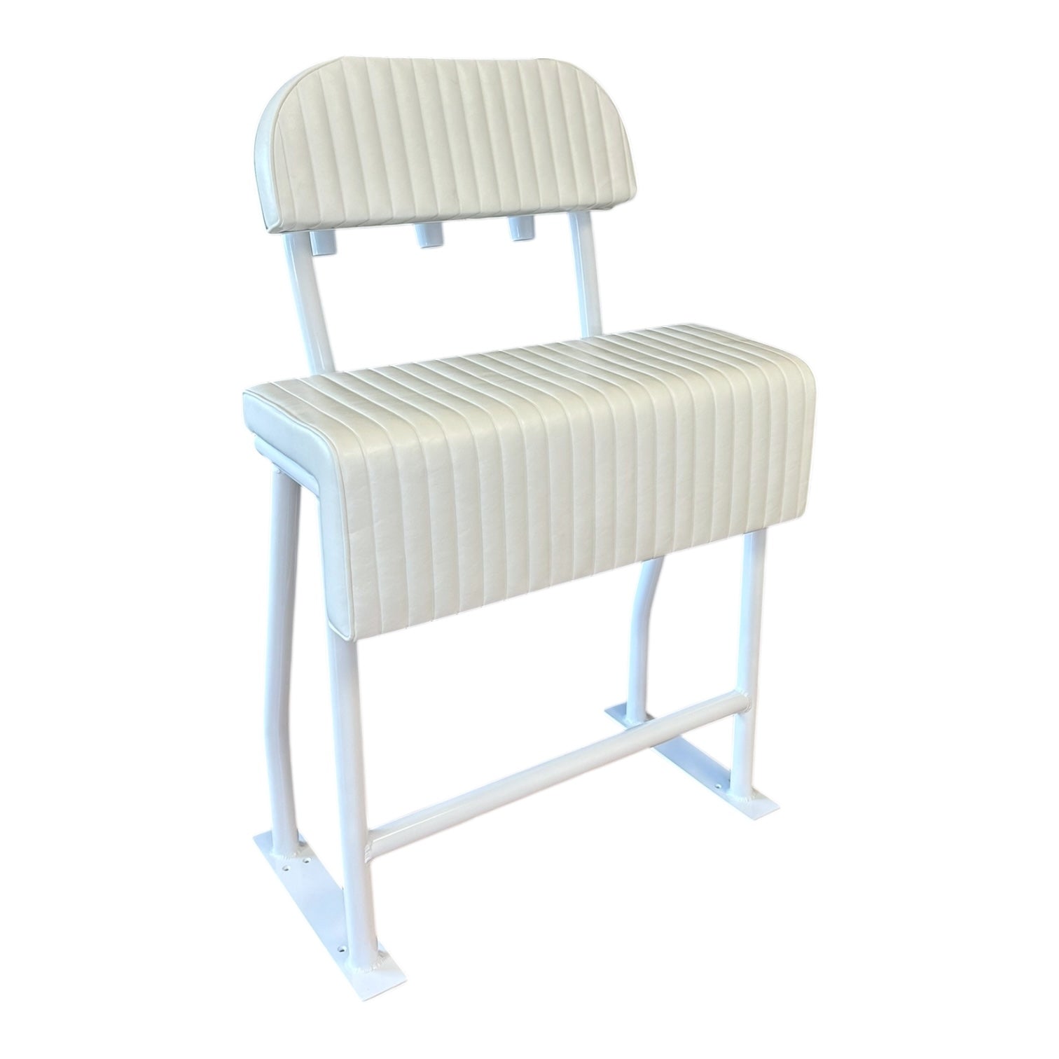 This 32" wide Sea-Line Deluxe leaning post comes with a Backrest and 4 welded Rod Holders. Made of TIG welded marine-grade aluminum and marine upholstery, this sturdy leaning post features a tough powder coat finish. 18" x 3" mounting plates.