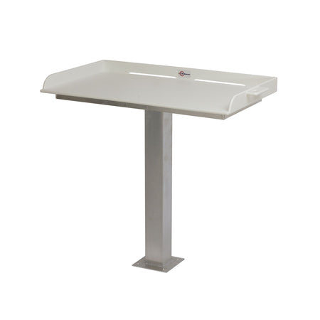 Our pedestal fillet table is made with all marine-grade aluminum, high quality welded construction, and stainless steel components. The fish cleaning station provides plenty of room to clean your catch with a 1/2" UV-resistant starboard top measuring 40 inches wide by 23 inches deep. The included knife and pliers holde ensures your tools are close at hand.